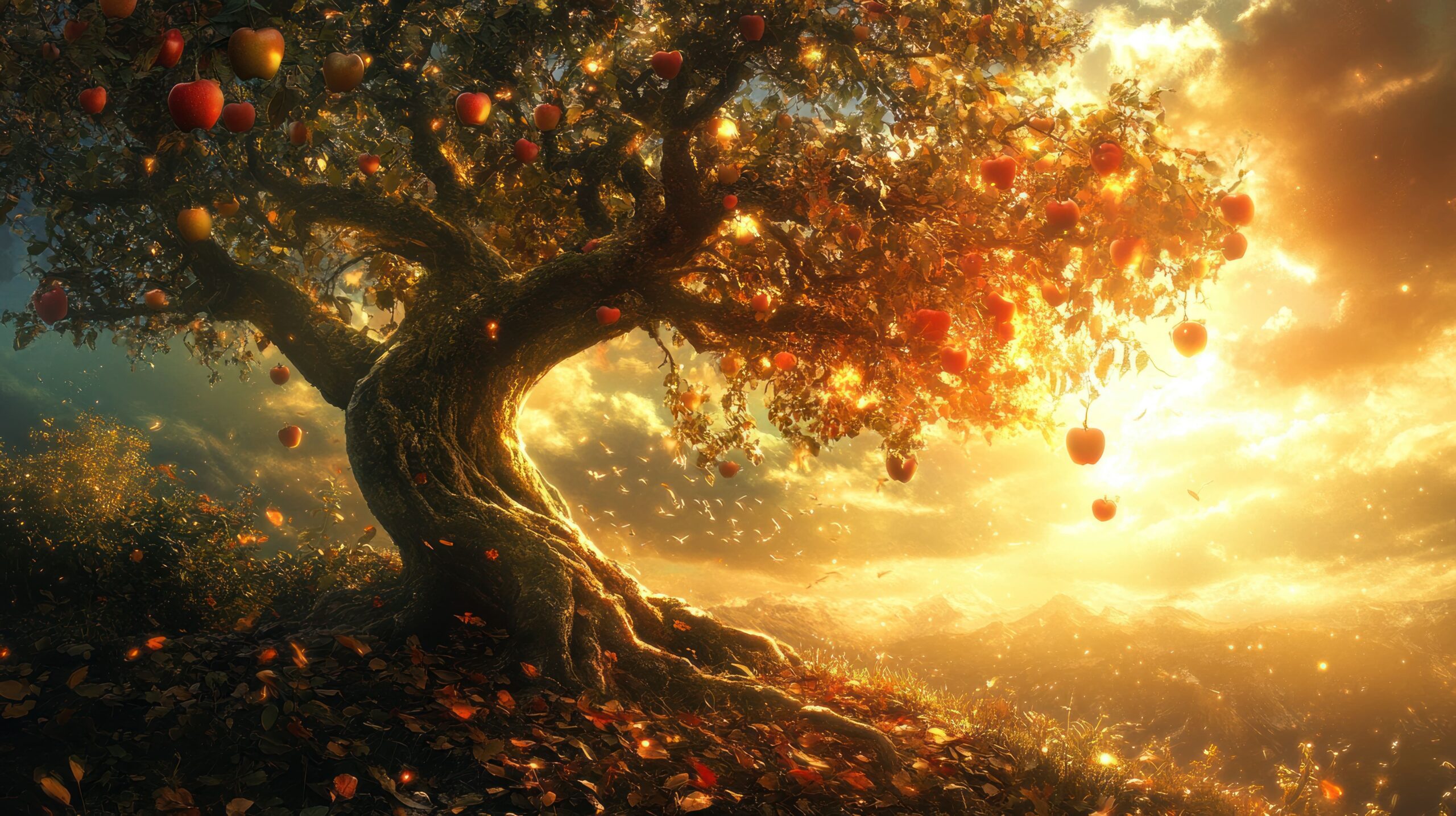 Le feuillage fait référence au pommier du Jardin d’Eden.